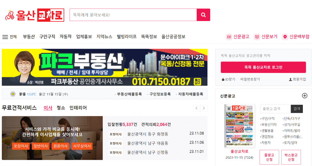 이번에 소개할 교차로 구인구직 역시 지역 고유의 정보를 많이 제공하고 있습니다. 특히 중고차와 부동산, 그리고 일자리 관련 내용들이 신문에 포함되어 있습니다. 많은 분들이 거주지 근처에서 일자리를 찾기 때문에 가장 인기있는 파트는 역시 구인구직이라고 할 수 있습니다.
