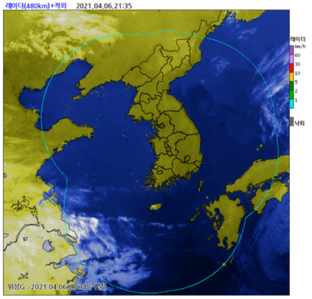왼쪽 메뉴에서 '영상,일기도'를 선택하시게 되면 기상레이더영상을 어렵지 않게 볼 수 있습니다.