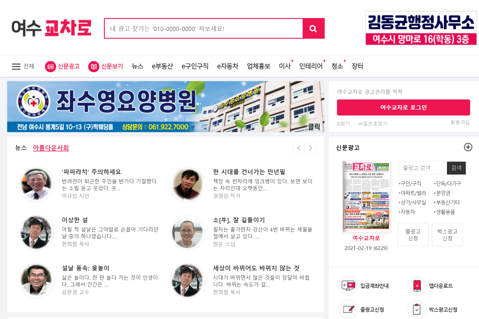 여수 교차로신문 홈페이지