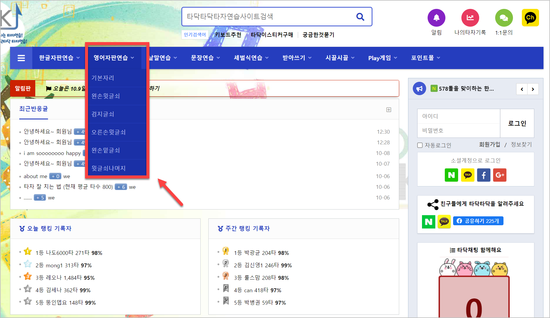 한국에 살아가면서 영문 타자연습을 해야할일이 얼마나 있겠어요. 저만해도 그렇게까지 잘 해야하는 이유를 몰라서 그냥저냥 하다보니까 자연스럽게 좋아졌지요. 하지만 어떤 이유에서든 갑자기 높여야할 때가 있겠지요. 그럴때는 연습을 해야합니다.