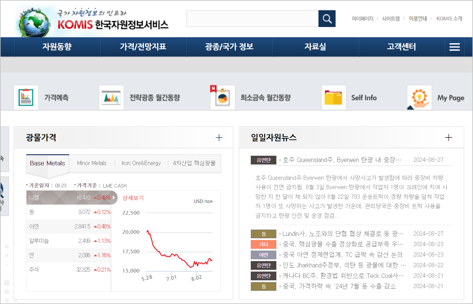 한국광물자원서비스(KOMIS)는 한국광해광업공단에서 운영하는 웹사이트로, 광물 자원에 관한 다양한 정보를 제공합니다. 이 서비스는 자원 관련 투자나 시장 동향에 관심 있는 일반인들이 무료로 이용할 수 있습니다.