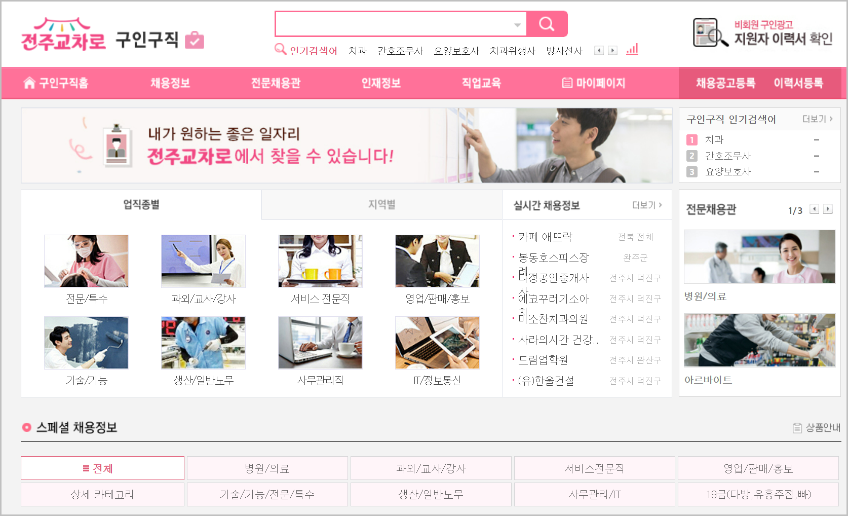 위와 같은 화면이 나오게 됩니다. 이곳에서 전주교차로구인구직 정보를 보기위헤서는 메뉴에 있는 구인구직을 클릭을 하시면 됩니다. 이곳에는 다양한 내용의 일자리 정보가 나와 있습니다.