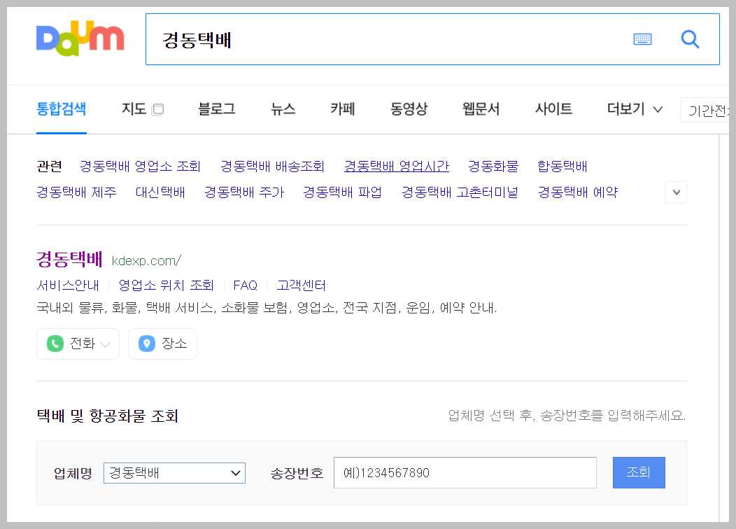 경동화물 배송조회를 하는 첫번째 방법은 네이버나 다음과 같은 포털을 이용하는 방법입니다. 이 방법이 가장 깔끔한 방법이라 생각이 듭니다.