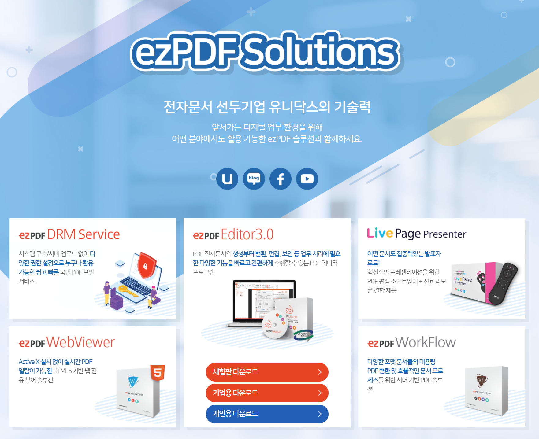 위 링크로 들어가시면 ezPDF 패밀리 프로그램을 다운로드 할 수 있습니다. 체험판, 기업용, 그리고 개인용을 모두 다운로드 할 수 있도록 되어 있습니다.
