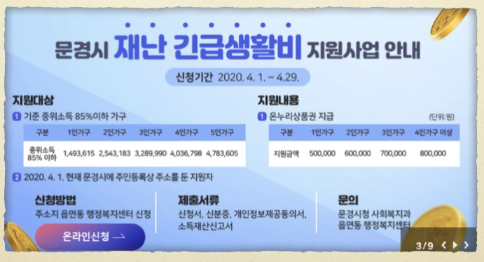 그 뿐만 아니라 과거 이슈가 되었던 문경시 재난 긴급생활비 지원사업에 대한 정보도 이곳에 올라왔습니다. 이러한 재닌지원금은 계속 되고 있습니다.