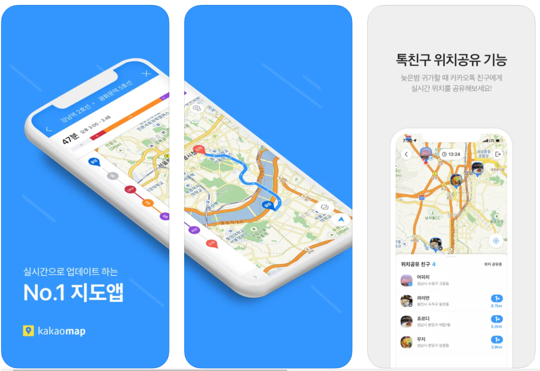우리나라에서 사용하는 지도앱은 대표적으로 2가지가 있습니다. 하나는 네이버지도, 다른 하나는 다음 지도입니다. 구글맵도 있기는 하지만 우리나라에서는 업데이트가 되지 않아서 사용이 거의 불가능한 수준입니다. 그렇기 때문에 2가지 밖에 없다고 봐도 무방할것 같아요.