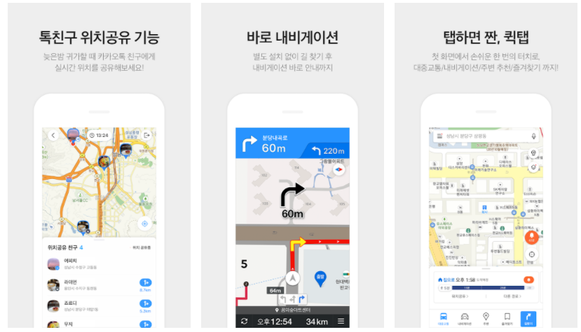 1)길찾기 기능이 좋아졌습니다. 다음지도에서 많이 사용되었던 길찾기 기능이 카카오지도에도 그대로 있습니다. UI가 훨신 자연스럽게 되었다고 합니다. 그 뿐만 아니라 24시간 내에 업데이트 된 최신데이터 기반으로 정확한 경로를 제시해 준다고 하네요.