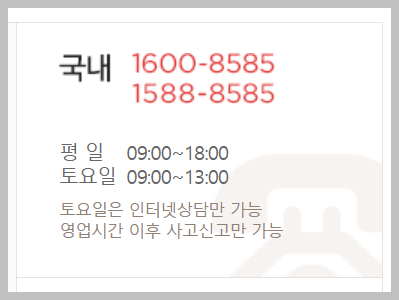국내 이용을 위해서는 주로 이 두 가지 연락처 중 하나를 선택하여 이용할 수 있습니다. 이 번호들은 주로 평일과 토요일 업무 시간에 연락가능합니다. 특히 토요일은 인터넷 상담만 가능하다고 하니 이점 참고하시길 바랍니다.