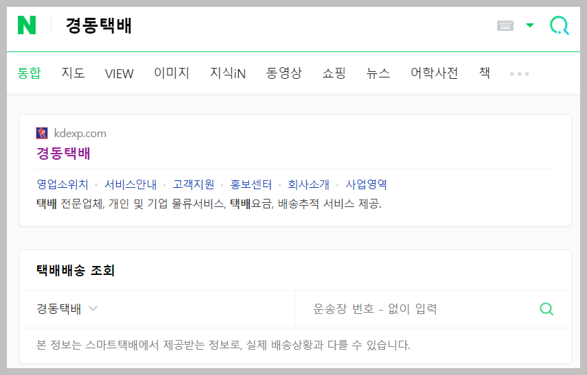 경동화물 배송조회를 하는 첫번째 방법은 네이버나 다음과 같은 포털을 이용하는 방법입니다. 이 방법이 가장 깔끔한 방법이라 생각이 듭니다.
