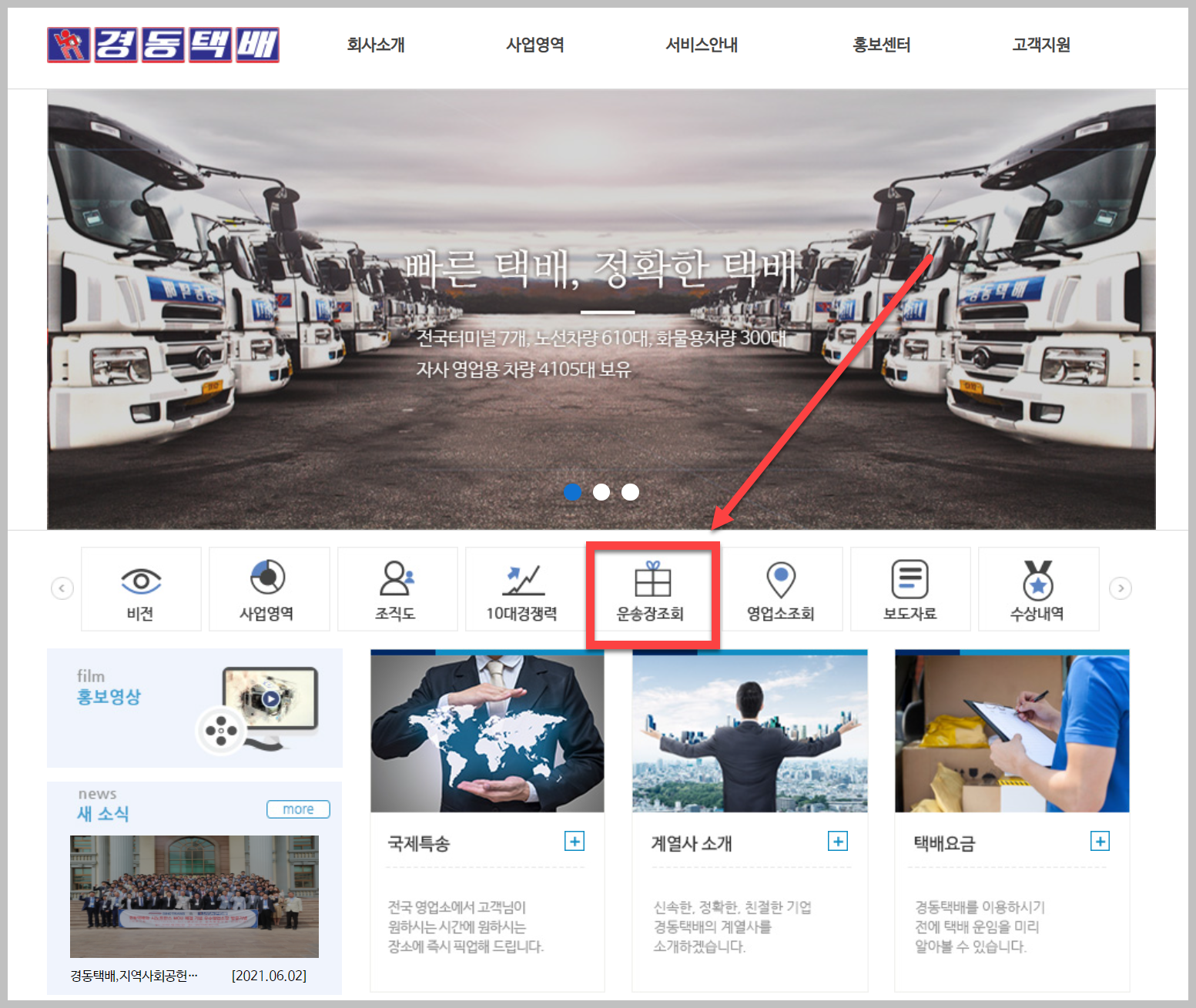 경동화물 배송조회 하는 두번째 방법은 홈페이지에서 직접 조회를 하는 방법입니다. 가끔 데이터가 늦게 오는 경우도 있는것 같아요. 이럴경우에 확인차 이용하시면 됩니다.