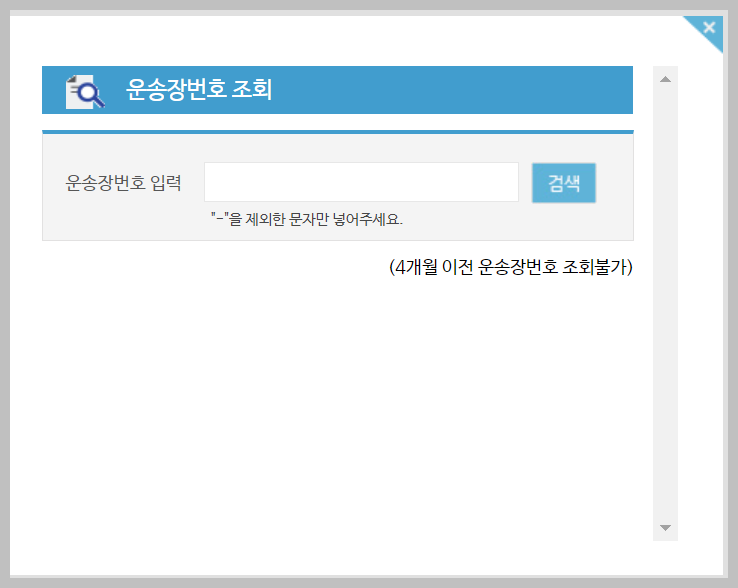 이러한 방식의 팝업이 뜨게 됩니다. 여기에다 입력을 하게 되면 배송조회가 가능합니다. 하지만 문제가 발생하기전에는 홈페이지까지 와서 검색을 할 이유는 없는것 같습니다.