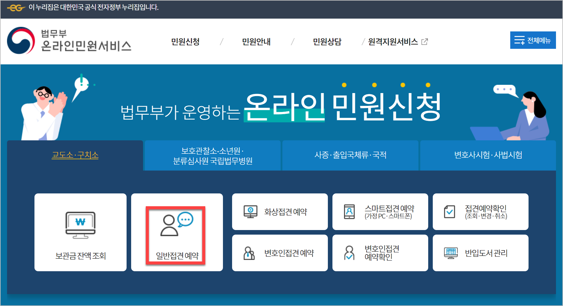 - 일반 접견: 교도소에 직접 방문하여 수감자를 면회하는 방식입니다. PC나 스마트폰으로 법무부 민원서비스에 접속해 예약을 진행합니다.