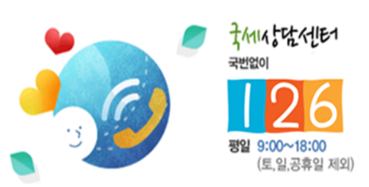 세법이나 홈택스 이용방법 등 세금과 관련된 다양한 문의가 있는 사람은 국번없이 126으로 전화하여 상담을 받을 수 있습니다. 평일 9시부터 6시까지 이용이 가능합니다. 연간 4백만건 이상의 문의가 이루어 지고 있다고 합니다. (탈세제보는 24시간)
