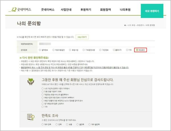 그러면 다음과 같이 후원 중단을 할 수 있는 선택지가 나옵니다. 이처럼 생각보다 간단하게 처리할 수 있습니다.
