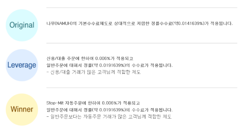 나무 앱을 통해서 계좌를 개설 : 정률 수수료 0.01%
