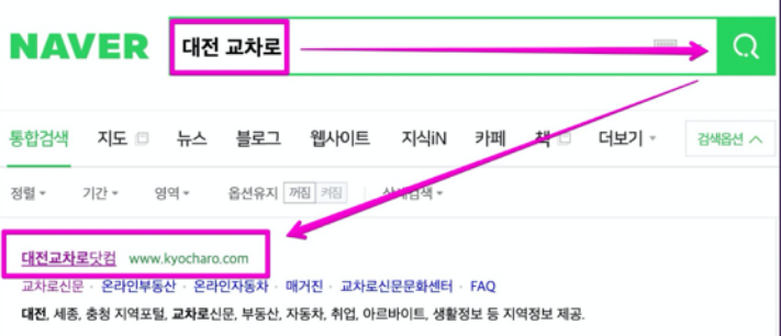 대전 교차로 구인구직 사이트에 접속하려면, 위 사진에 나와있는 것과 같이 네이버, 구글, 다음과 같은 검색 엔진을 통해 검색해서 해당 홈페이지로 들어갈 수 있습니다.