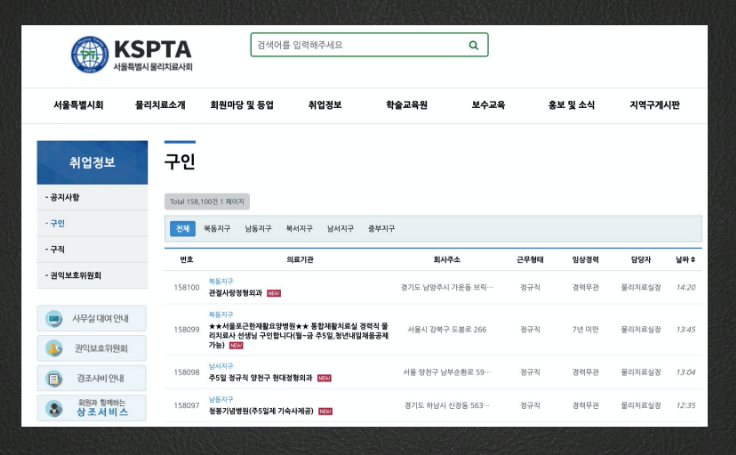 서울특별시 물리치료사회 구인구직