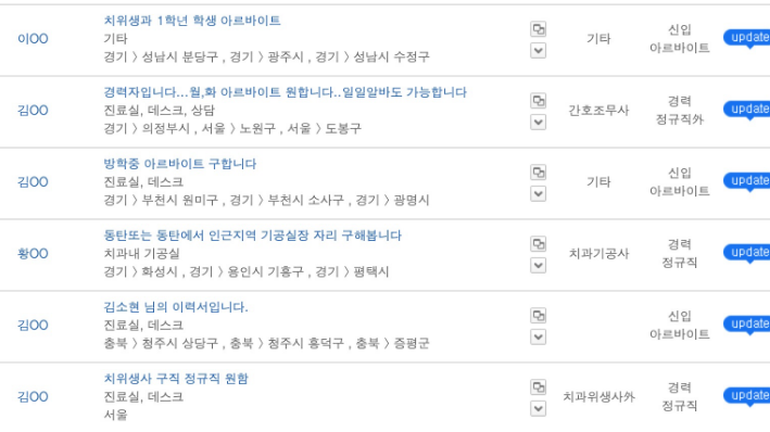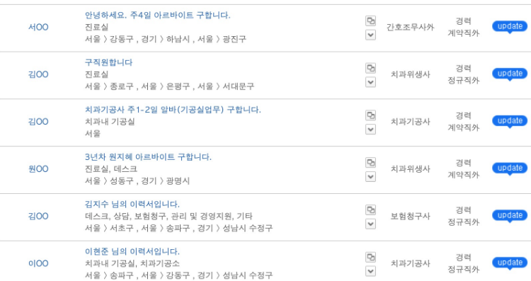 이런 사이트는 지역별, 역세권별, 직종별, 채용형태별로 다양한 검색을 지원을 하고 있습니다. 즉, 원하는 치과 관련직업을 손쉽게 검색을 할 수 있는 것이 장점입니다. 자신의 상황과 처지, 그리고 자격에 맞는 것을 검색이 가능하지요.