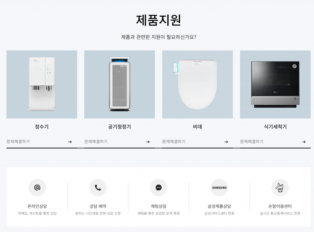 만약 제품에 문제가 발생했을 때는 해당 물건에 대한 자가 점검을 진행할 수 있습니다. 위 링크로 들어가면 다양한 제품에 대한 기본적인 문제 해결 방법이 제시되어 있습니다. 또는 처음에 구매할 때 함께 제공되었던 설명서를 참고하는 것도 방법이 될것 같습니다.