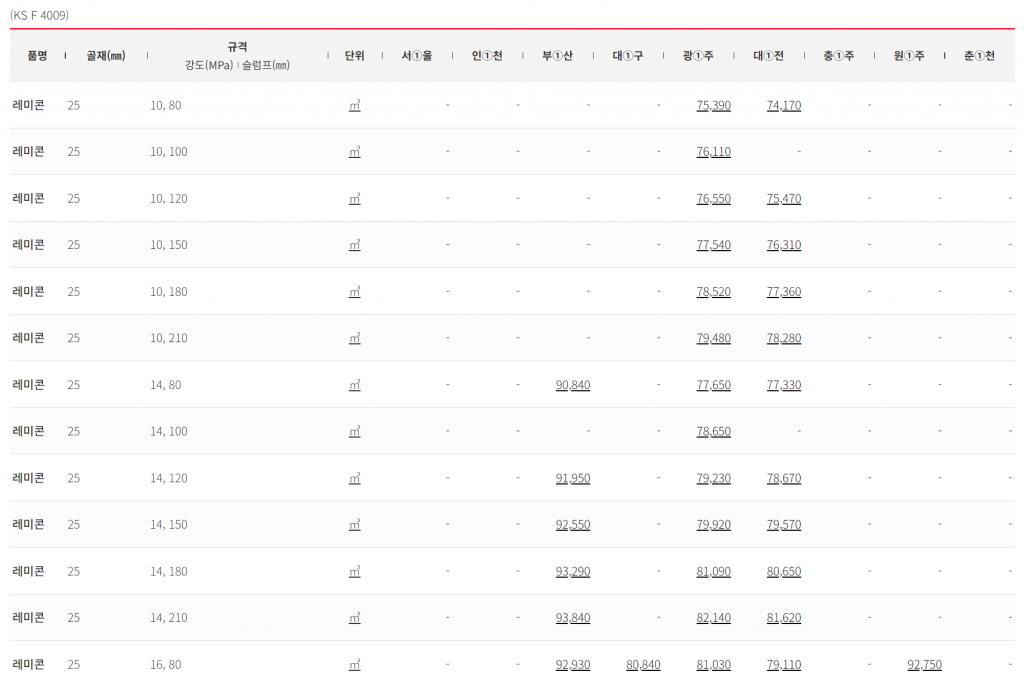 위 링크로 이동하면 레미콘 정보를 쉽게 확인할 수 있습니다. 이전에 비해서 가격이 오른것으로 보이네요. 해당 화면은 구글 캐시를 활용한 것으로 언제 사라질지는 알 수 없습니다.