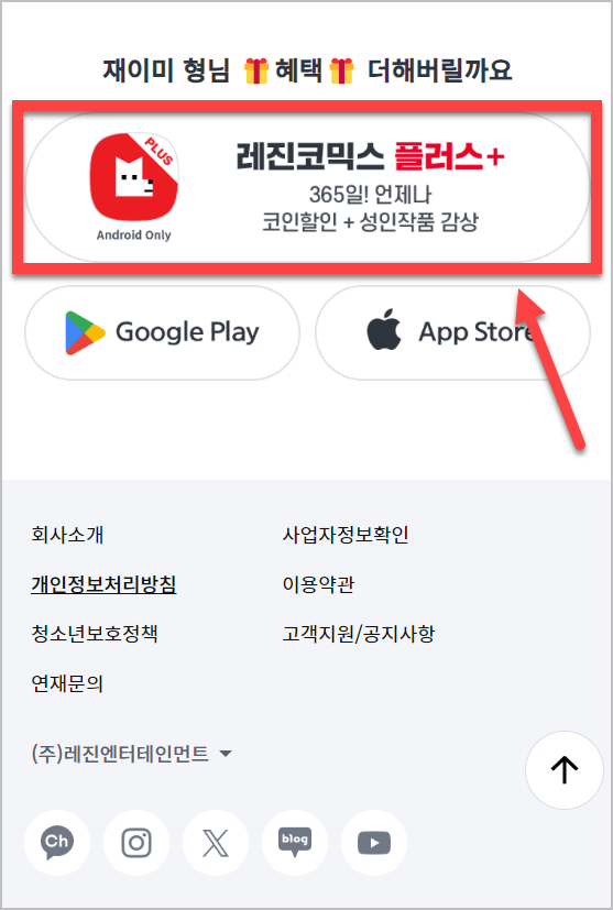 설치는 다음과 같은 간단한 단계를 따라 진행할 수 있습니다. 먼저, 공식 홈페이지의 하단으로 스크롤하여 "PLUS 앱 다운로드" 버튼을 찾아 클릭합니다.