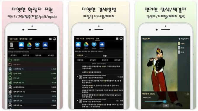 - 만화: 다양한 만화파일 형식을 지원하여 만화책을 편리하게 볼 수 있도록 합니다.