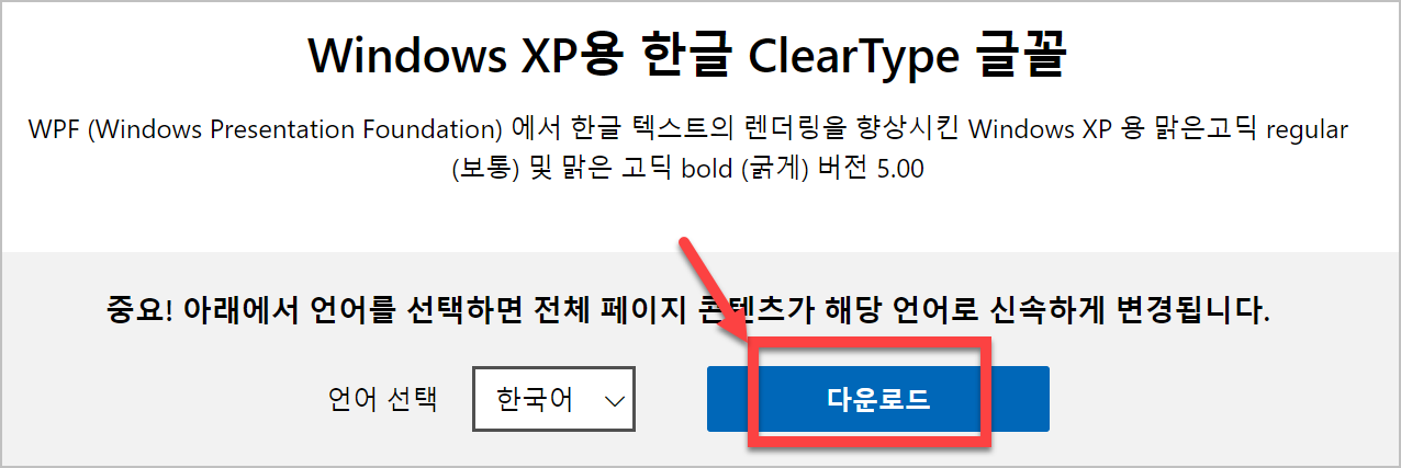 홈페이지에 들어가면 위와 같은 화면을 볼수 있씁니다. '다운로드'를 클릭을 하시면 해당폰트를 설치할수 있게 됩니다.