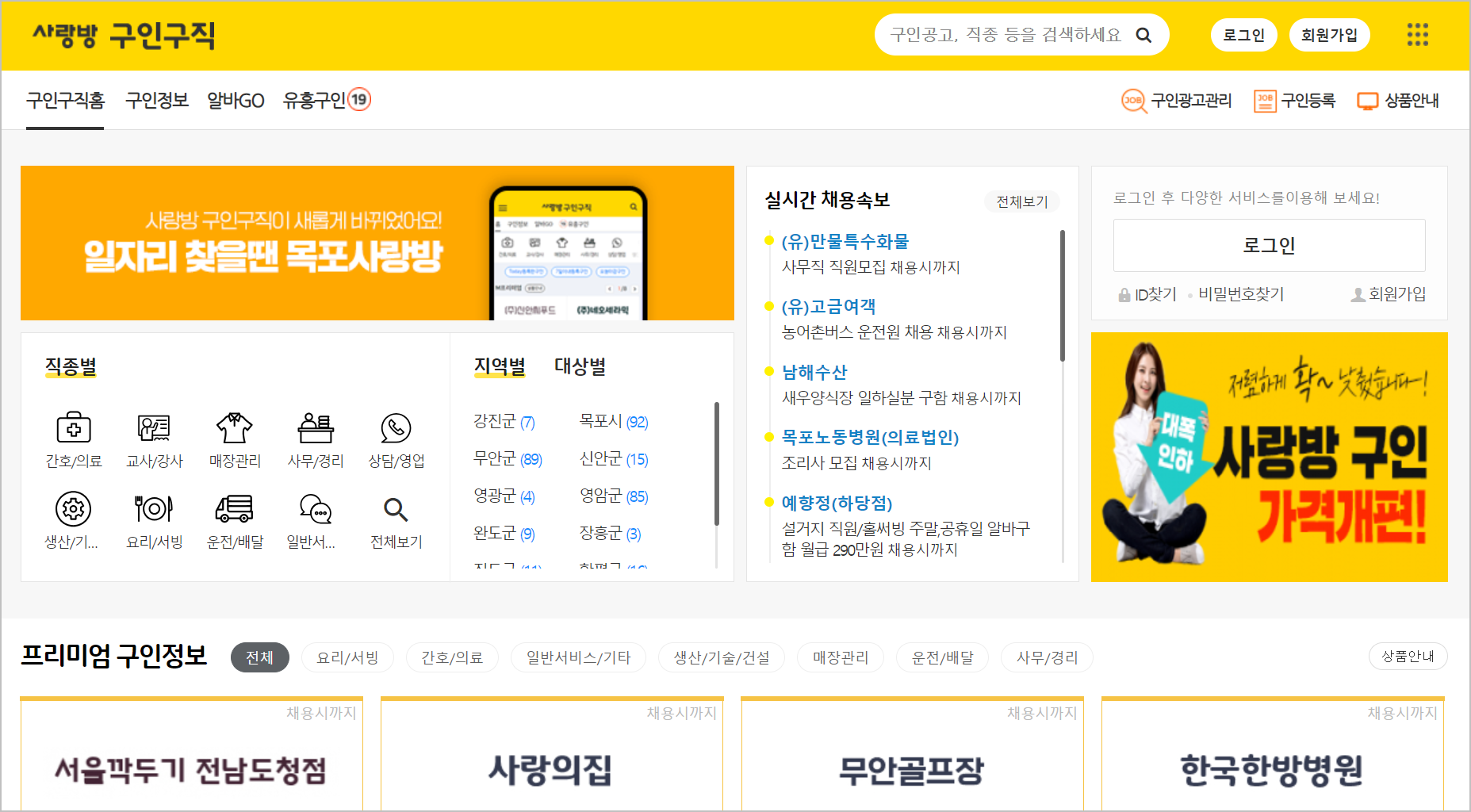 목포사랑방의 웹사이트는 모바일에서도 쉽게 접근할 수 있어 편리합니다. 구인구직 정보를 카테고리별로 제공하며, 목포를 비롯한 인근 동네 소식도 포함하고 있어 지역 주민들에게 유용합니다.