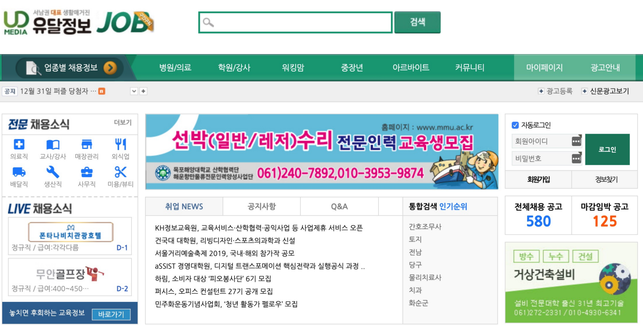이 링크를 통해서 들어가시면 목포유달정보잡이라는 목포 유달정보 구인구직 사이트에 들어가실 수 있습니다. 종이신문은 검색이라는 것을 활용할 수 없지만, 이 사이트를 통해서 들어가시면 검색을 할 수 있는 장점이 있습니다.