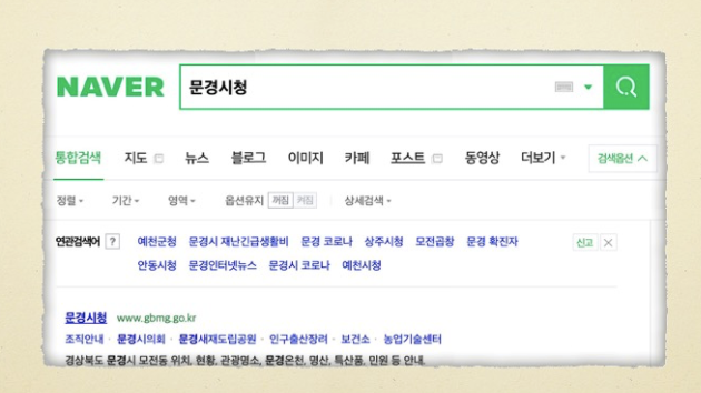 위 그림은 네이버에서 문경시청 이라고 간단하게 검색을 한 결과입니다. 당연한 이야기 이지만 문경시청 홈페이지가 가장 맨 위이 나오네요.