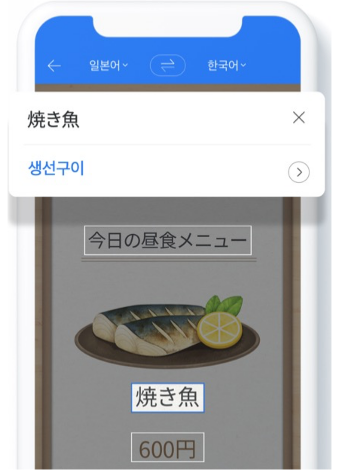 첫번째 기능은 사진을 번역하는 것 입니다. 해외에 나갈때 메뉴판을 보시면 당황스럽습니다. 어떤게 어떤것인지 모르기 때문이지요. 그럴때는 사진속 번역기를 사용을 해보세요.