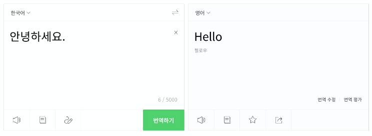 네이버 번역기는 개인적으로는 단문 번역의 경우에는 구글보다 훨씬 더 좋은 성능을 보여주고 있다 생각합니다. 하지만 긴 문장의 경우에는 의미가 완전 달라지는 경우가 종종 있습니다. 그럴때는 구글 번역기와 조금 섞어서 사용을 해주면 좋습니다.