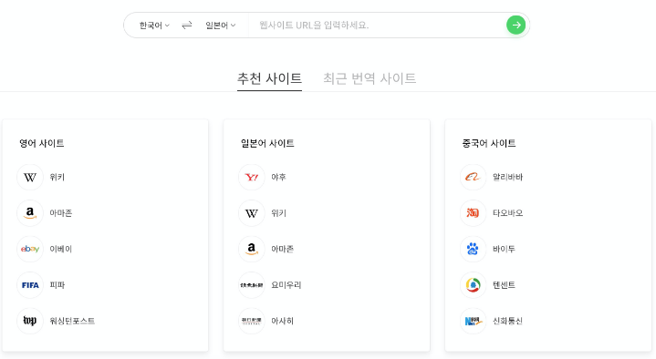 참고로 파파고는 웹 사이트 번역도 가능합니다.
