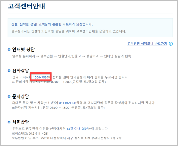 병무청 전화번호