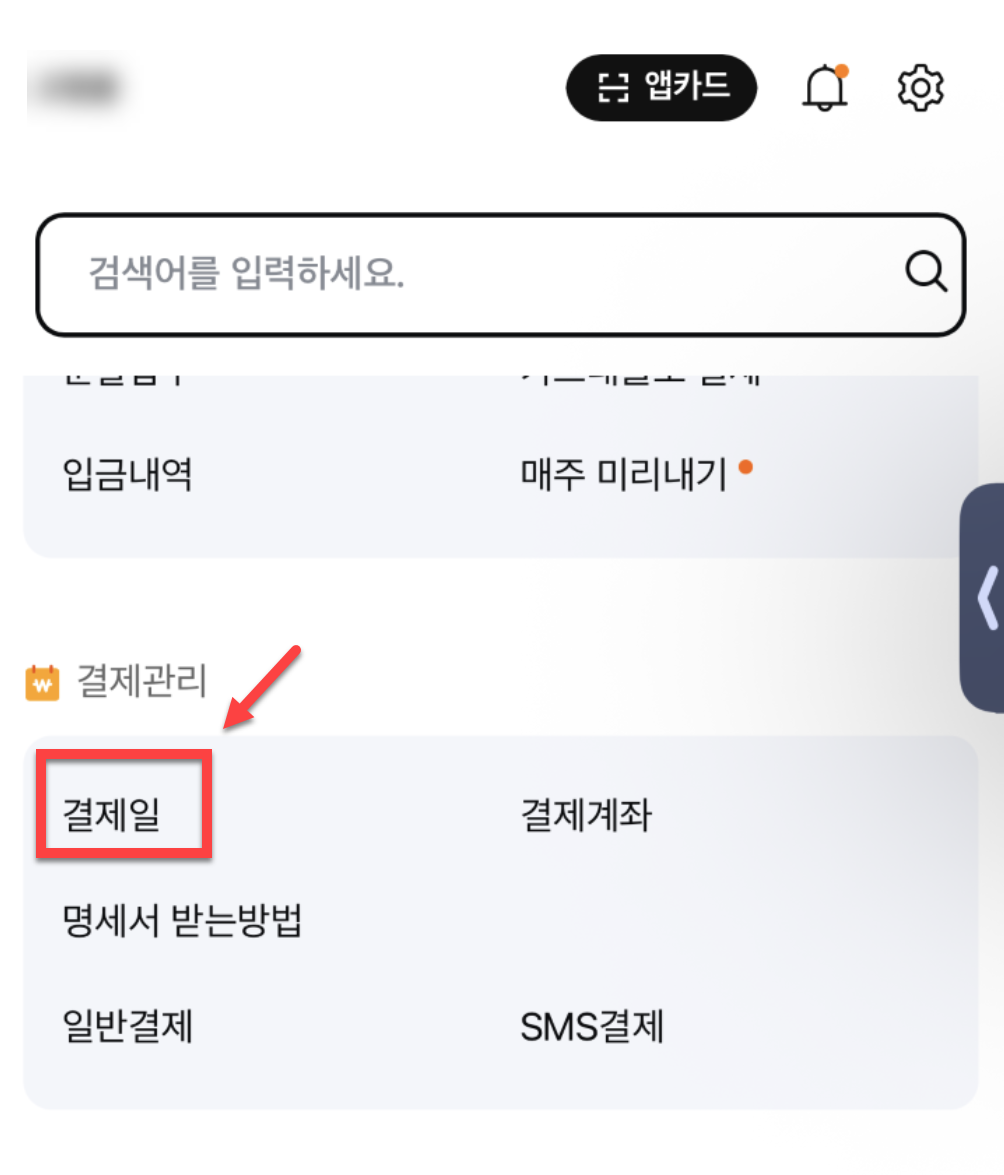 - [전체 메뉴] → [결제관리] → [결제일 변경]