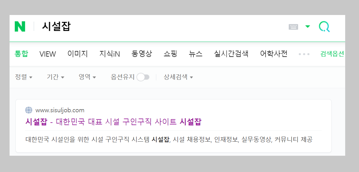 위 화면을 보시면 네이버에서의 검색 결과입니다. 가장 맨 위의 것을 선택을 하셔서 클릭을 하시면 시설잡 사이트에 들어가실 수 있습니다.