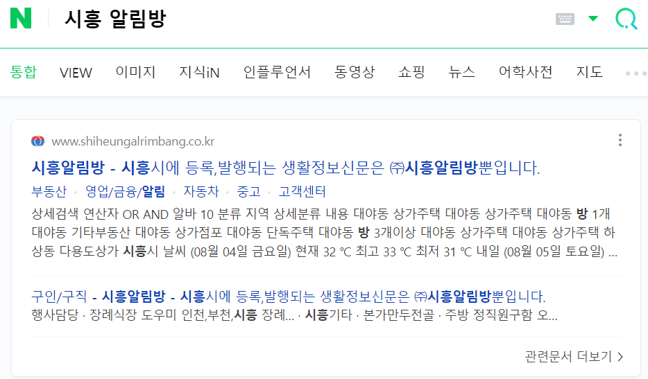 시흥 알림방에 접속하려면 네이버, 다음, 또는 구글에서 검색하면 됩니다. 네이버에 검색하면 위와같은 결과가 나오게 됩니다.