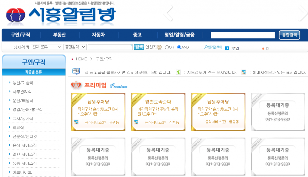 알림방은 시흥시에서 발행되는 유일한 생활정보신문입니다. 인터넷이 발달하기 전부터 일자리, 주거 등 다양한 지역 생활 소식을 전달해 주었습니다. 현재는 종이신문 대신 온라인 홈페이지로 그 소식들이 올아오고 있다고 하네요.
