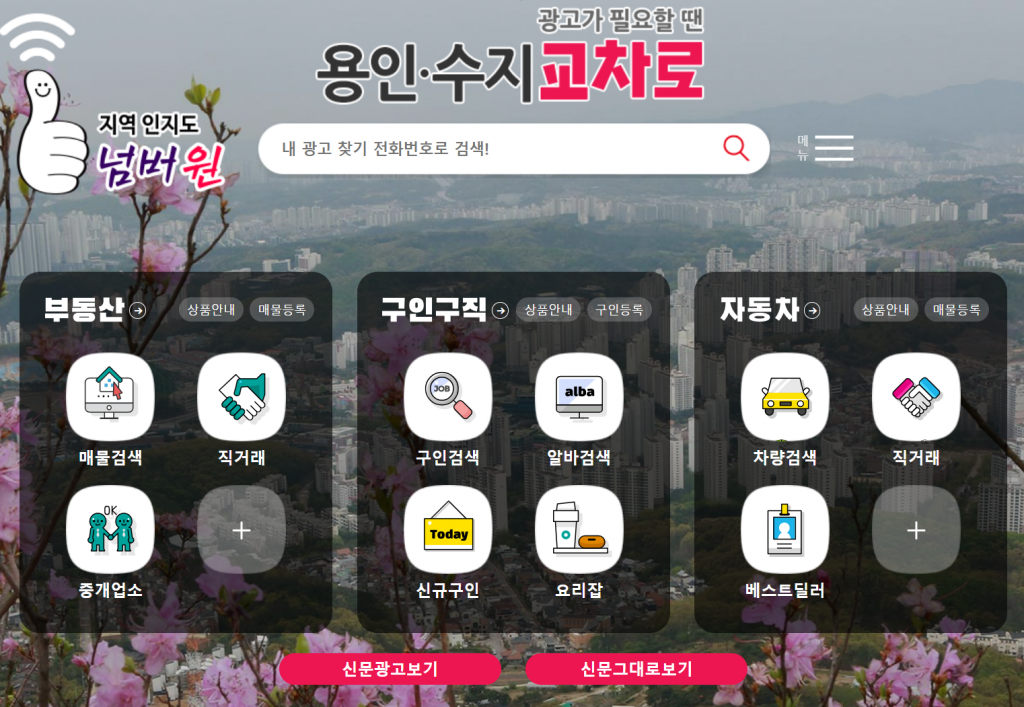 하지만 생활정보지 역시 현대화에 발맞추고자 힘을 기울이고 있습니다. 많은 회사들이 각자의 홈페이지를 운영하기 시작했고, 과거 종이 신문에 실었던 내용을 온라인 홈페이지에 게재하고 있습니다. 오늘 포스팅에서 소개할 용인교차로 역시 그 중 하나라고 볼 수 있습니다.