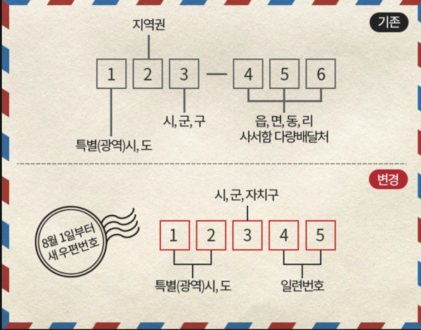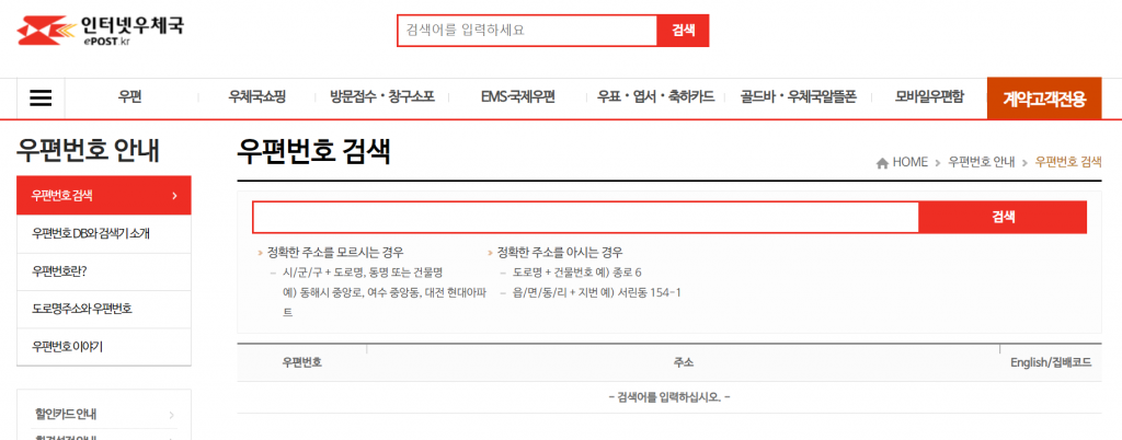 위 사진을 참고하면 변경된 사항을 쉽게 알아볼 수 있습니다. 이런식으로 계속 변경이 되다보니 헷갈리기 마련입니다. 그래서 이번 포스팅에서는 우편번호를 검색하는 방법에 대해 다뤄보도록 하겠습니다. 먼저 가장 공식적인 방법은 우체국의 공식 웹사이트를 이용하는 것이라고 생각됩니다.