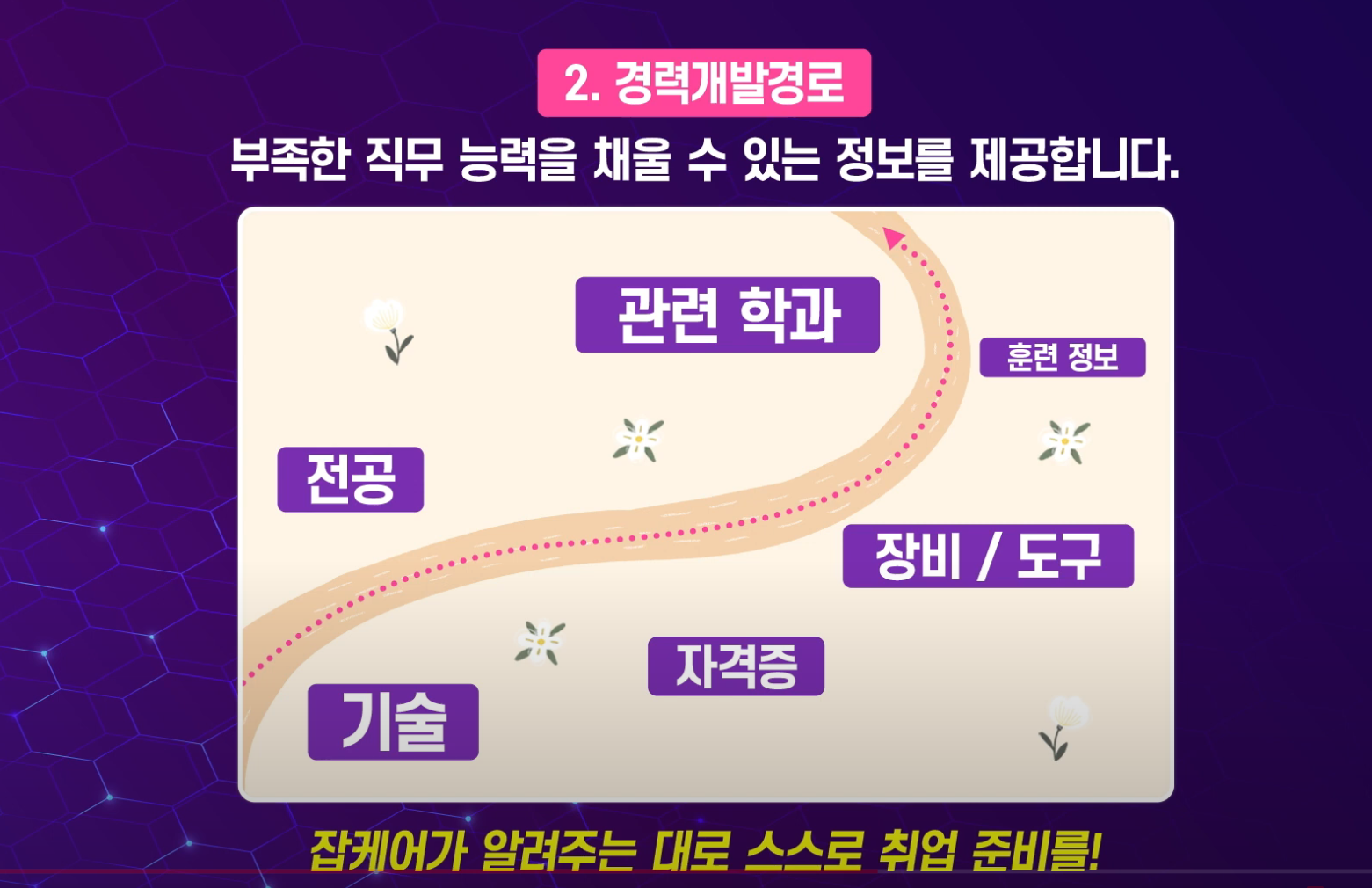 예를 들어, 정보통신공학을 전공한 대학 졸업 예정자가 자신의 진로와 취업 가능성에 대해 고민할 때, 잡케어를 통해 이력서를 분석받고 데이터 분석가로의 경로를 설정할 수 있습니다. 이 시스템은 해당 직무에 필요한 자격증, 훈련 과정, 그리고 연관 직업에 대한 정보까지 제공하여 사용자가 자신의 직무 능력을 개발하고, 더 나은 취업 기회를 찾을 수 있도록 지원합니다.