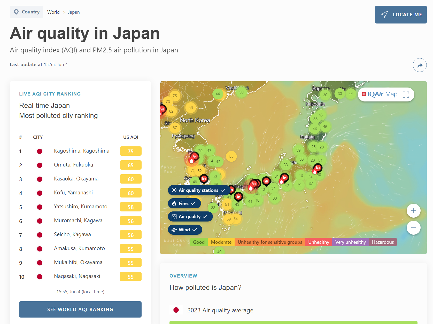 - AQICN.org: 전 세계의 대기질 지수를 제공하는 글로벌서비스로, 일본의 주요 도시들의 미세먼지 농도를 실시간으로 확인할 수 있습니다. 이 사이트는 다양한 언어를 지원하며, 사용자가 원하는 지역의 대기질 정보를 쉽게 검색할 수 있는 기능을 갖추고 있습니다.