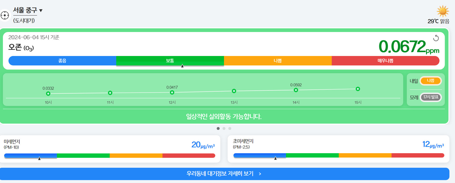 우리나라의 경우에는 다양한 홈페이지에서 해당 내용을 확이할 수 있습니다. 가장 대표적인 곳은 '에어코리아'라는 서비스 입니다.