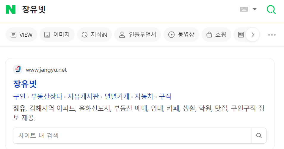 위의 결과는 네이버에서 "장유넷"을 검색했을 때 보이는 화면입니다. 여기서 "구인"을 클릭하면 구인구직 사이트로 이동할 수 있습니다. 이 외에도 부동산이나, 자동차, 자유게시판 등이 있습니다.