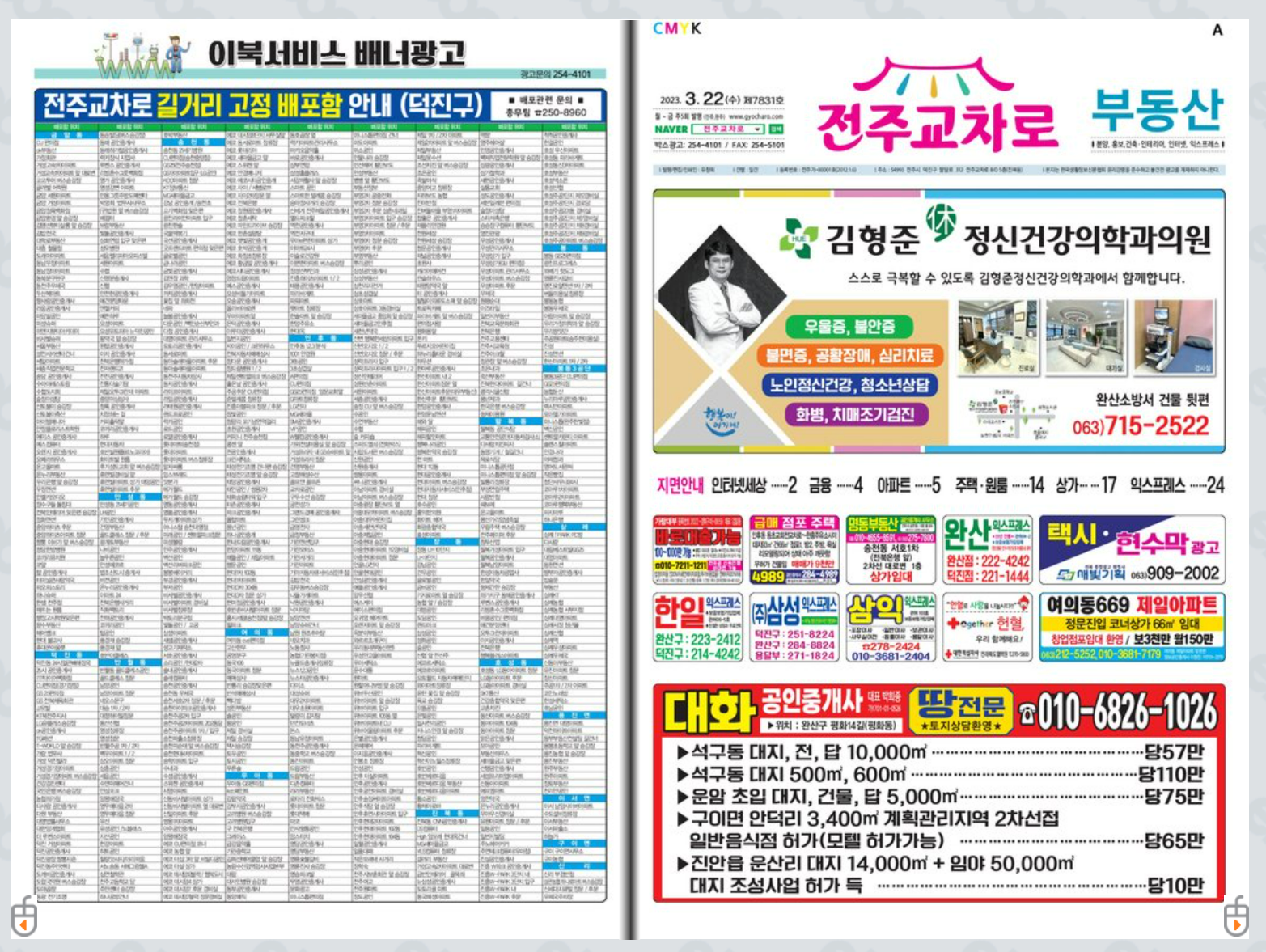 전주교차로는 그나마 규모가 큰 곳이라 인터넷으로 여전히 이용이 되고 있습니다. 또한 신문그대로보기 서비스를 통하여 종이 매체가 아니면서 컴퓨터로 쉽게 신문형태로 볼 수 있도록 되어 있습니다.