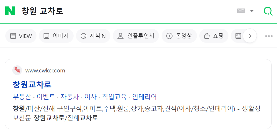 창원 교차로 신문에 접속하려면 먼저 위 사진과 같이 네이버에서 검색해야 합니다. 검색 결과중 가장 상단에 뜨는 곳을 클릭하면 해당 사이트로 이동합니다. 부동산이나 자동차로 들어가지 않도록 유의하시길 바랍니다.