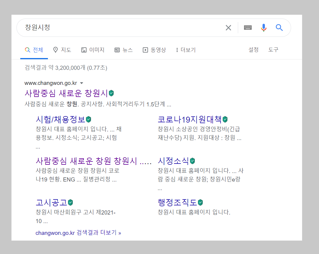 간단하게 창원시청이라고 포털에 입력을 해주면 가장 맨위에 창원시청 홈페이지로 들어갈 수 있는 링크가 제공이되게 됩니다.