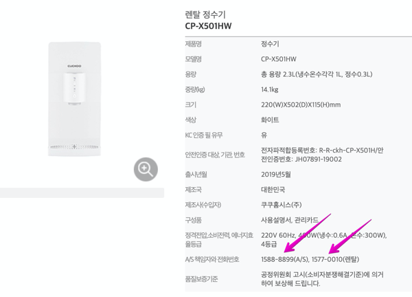 위 이미지에 나와 있는 번호는 CUCKOO 공식 홈페이지에 실려 있는 내용입니다. 이미지를 참고해 보면 고객센터(AS)는 1588-8899로 연락하실 수 있습니다. 렌탈 문의를 하려면 1577-0010으로 문의하시면 됩니다. 이는 공식 홈페이지에서 확인된 정보입니다.