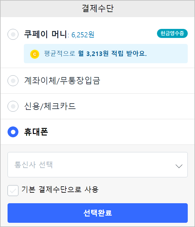 그렇게 많이 광고를 하였던 쿠팡 후불결제 시스템, 그리고 네이버도 마찬가지고 여러 마켓에서 이러한 류의 서비스가 넘쳐 났었다. 뭔가 찝찝해서 그간 사용을 하지않았다. 그런데, 엊그제 여전히 쿠팡에서 운영되고 있나 싶어서 결제창을 살펴봤는데 예전에 있었던것이 보이지 않았다. 종료가 된것으로 보인다.