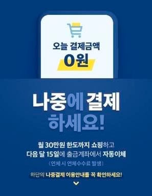 쿠팡은 '나중결제'라는 이름으로 진행을 했었다. 이것도 나중에 신문에서 확인을 했다.
